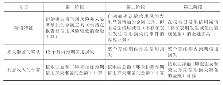 金融资产发生信用减值的过程分为三个阶段,对于不同阶段的金融资产的减值有不同的会计处理方法: