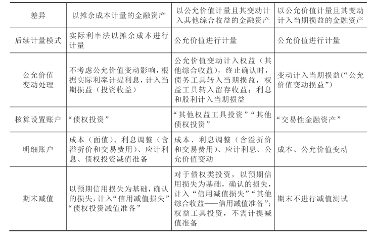表3−3 金融资产核算差异对比表