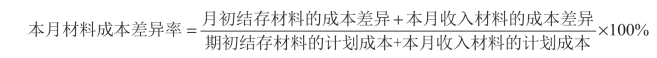 材料按计划成本进行日常收发核算,其特点是:从材料的收发凭证到明细分类账和总分类账,全部按计划成本计价,材料的实际成本与计划成本的差异通过“材料成本差异”账户核算。会计核算上,一般设置“材料采购”“原材料”“材料成本差异”等科目,不再设置“在途物资”科目。月份终了,将材料成本差异总额在发出材料和期末库存材料之间进行分摊。计算公式是: