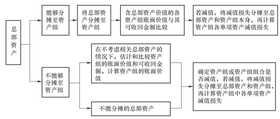 企业总部资产包括企业集团或其事业部的办公楼、电子数据处理设备、研发中心等资产。总部资产的显著特征是难以脱离其他资产或者资产组产生独立的现金流入,而且其账面价值难以完全归属于某一资产组。因此,总部资产通常难以单独进行减值测试,需要结合其他相关资产组或者资产组组合进行。