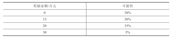 表16−3 A公司合理预计其获得不同金额奖励的可能性
