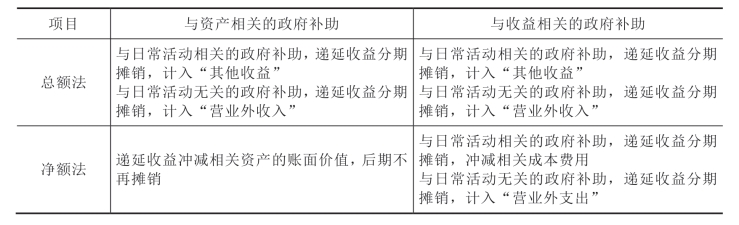 表17−1 两类政府补助在总额法与净额法下的处理对比
