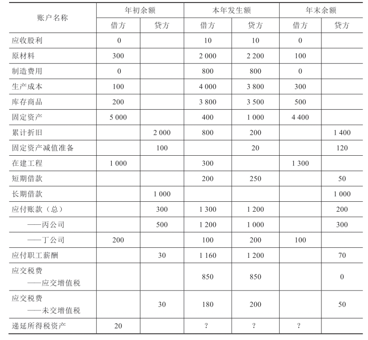 (1)资产、负债类部分账户年初、年末余额和本年发生额如下(单位:万元):