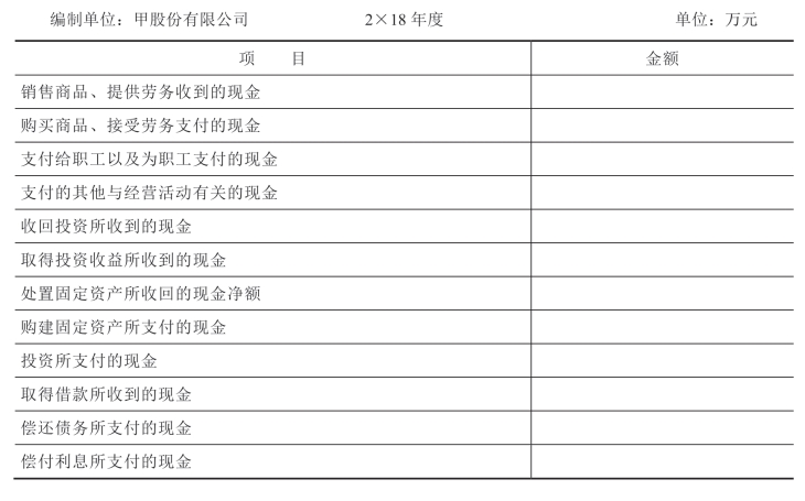 (2)填列该公司现金流量表所列示部分项目的金额: