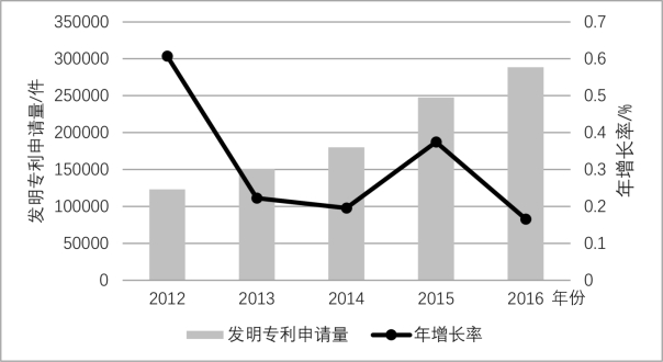 图1-2 2012—2016年长江经济带发明专利申请受理量趋势变动