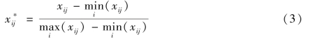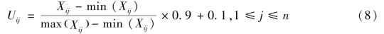 式中,Xij代表第i个市域单元的第j年 的综合指数得分,min(Xij)和max( Xij )代表各综合得分数据中的最小值和最大值,标准化处理后的Uij取值范围是[0,1]。