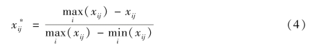 为了保证耦合协调模型后续计算的正常进行,将上述两个系统的得分分别进行标准化处理,公式为: