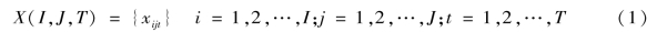 动态因子分析法全面考虑了变量、时间和样本三个要素,假定了三维阵列运算模型: