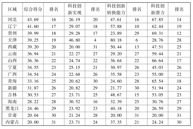 按照上述方法和过程,得到中国省域科技创新能力评价结果(表3-12)。