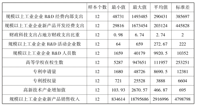 表3-15 湖北省主要城市科技创新能力评价指标描述性数据分析