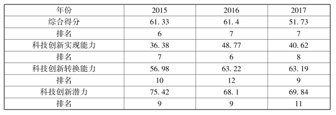 表3-13 湖北省科技创新能力2015—2017评价指数
