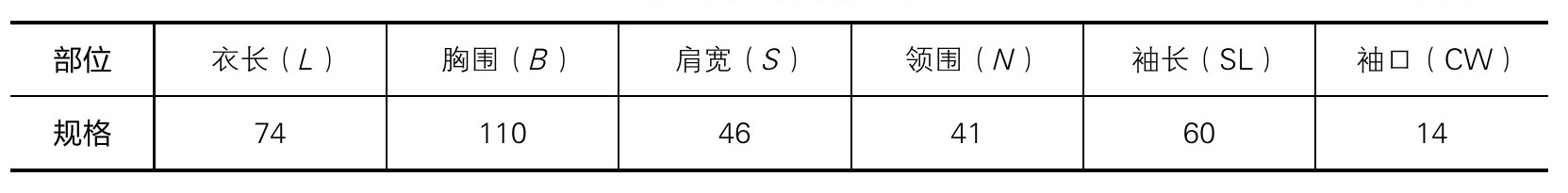 袖口大CW=0.1(B*+内衣松度)+(5~6)cm=0.1×(88+3)cm+5cm=14cm