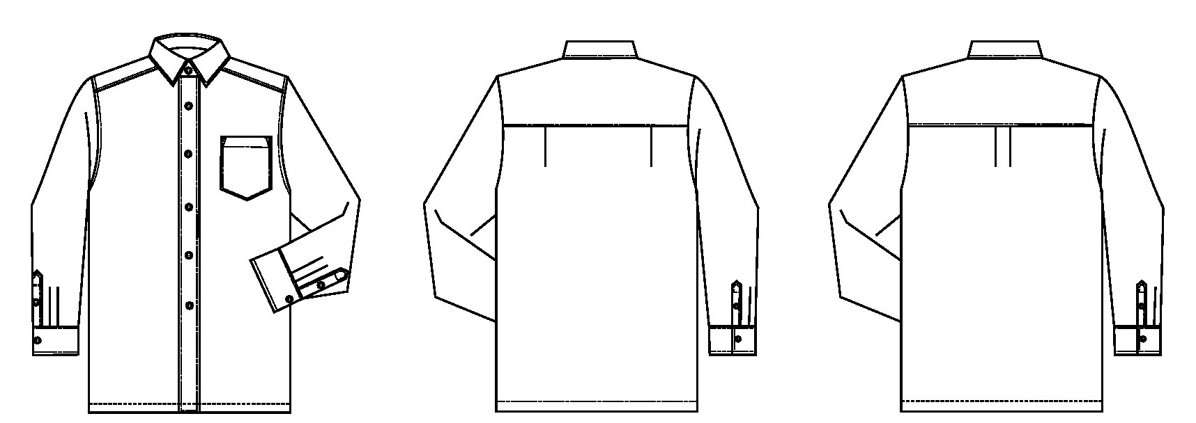 普通衬衫也称为标准衬衫,根据季节不同,可分为长袖衬衫和短袖衬衫两种款式。长袖衬衫为西装内穿着,短袖衬衫为夏季外穿(图3-1、图3-2)。