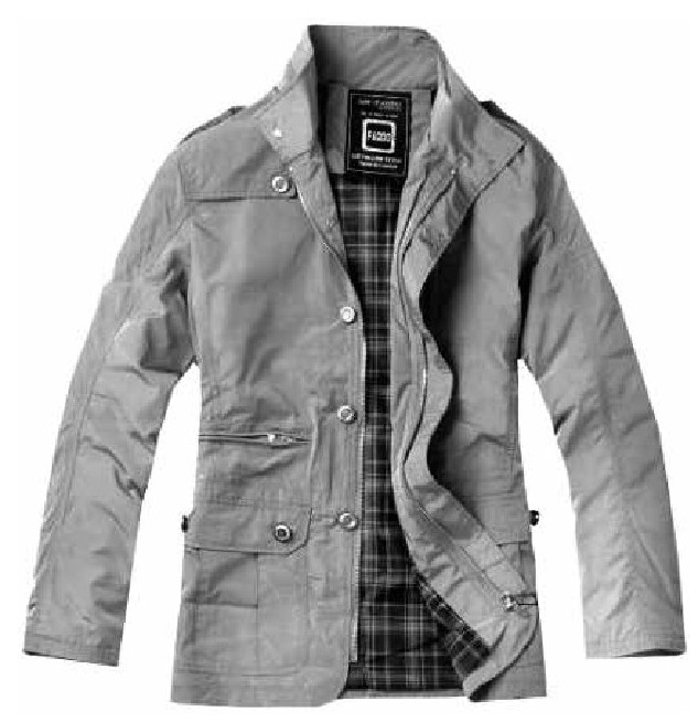 (7)按风格分可分为运动夹克(平接肩)(图4-1)、休闲夹克(古典风格)(图4-2)、商务休闲夹克(中年装)(图4-3)和工装夹克(时尚版)(图4-4)等。