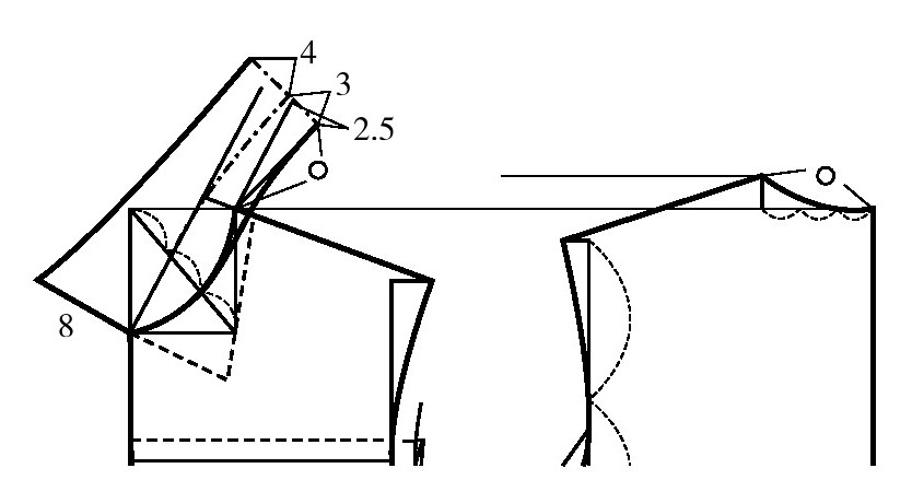 (4)后背宽为S/2-2cm,前胸宽为前肩点向内2.5cm。