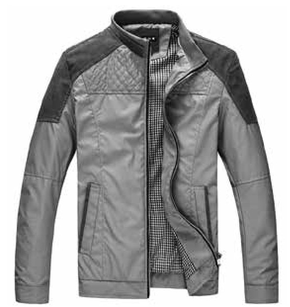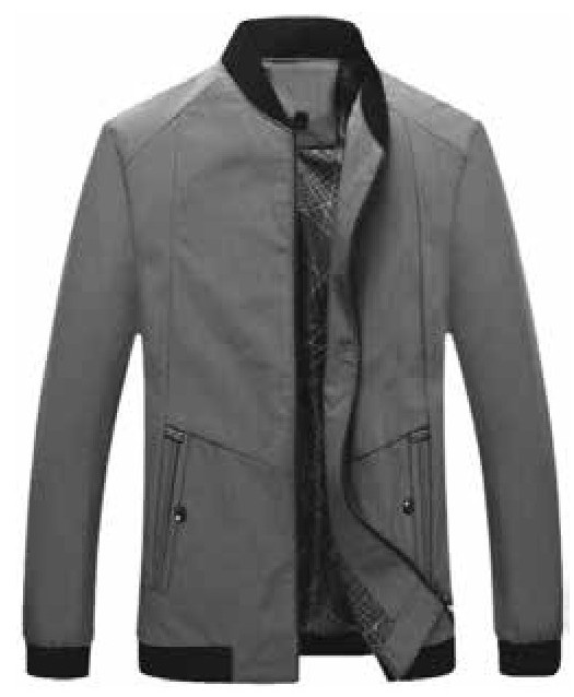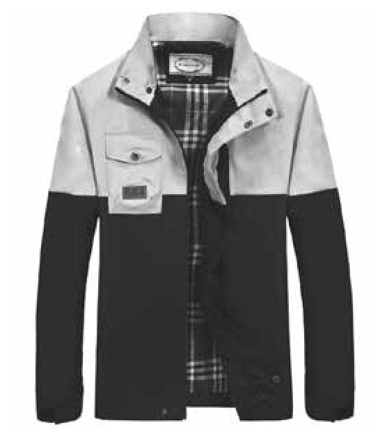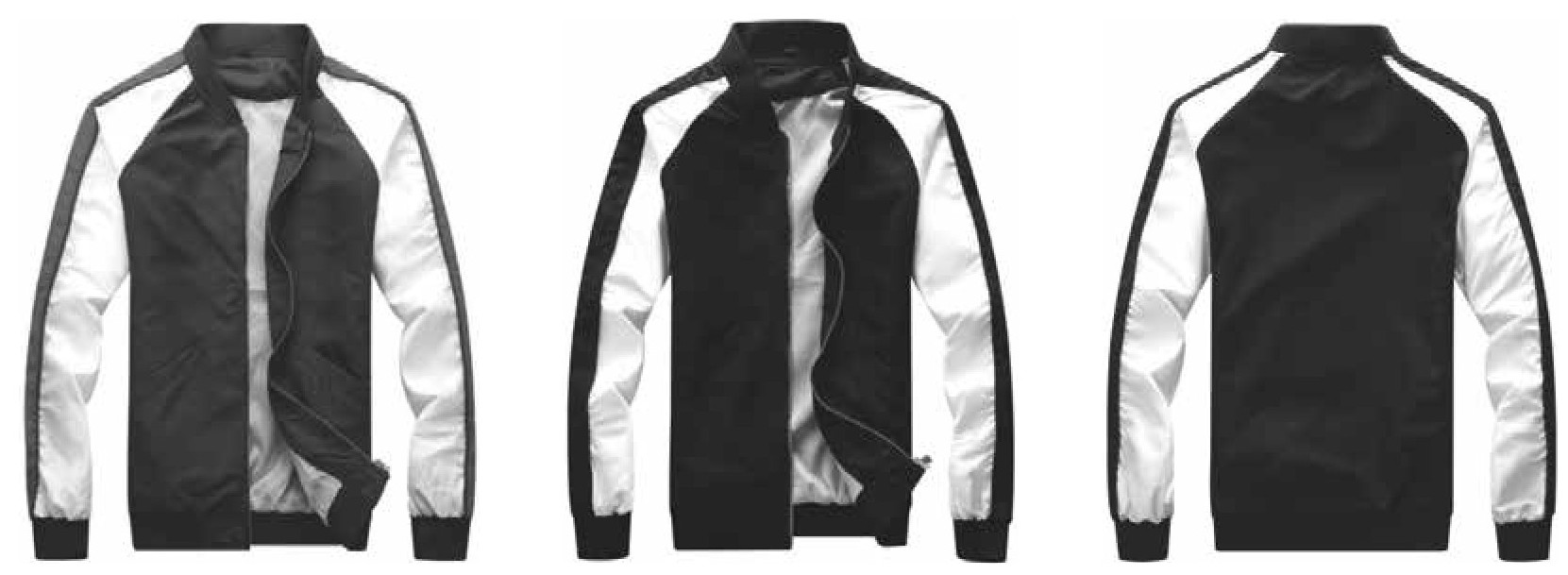 运动风格的夹克主要是指人们在户外运动时穿着的夹克款式,这类夹克的特点是衣身比较宽松,满足较大活动幅度的需要;袖子以插肩袖结构设计为多,活动的舒适度较好,同时便于分割拼色,具有良好的团队标识;领子多为立领或普通翻领;袖口和下摆以罗纹收口;前中为拉链设计,穿脱比较方便(图4-12),很多中学的校服也属于此类设计。