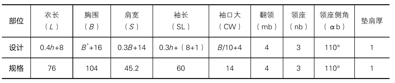 (1)衣长:本款衣身偏长,按0.4h+8cm。