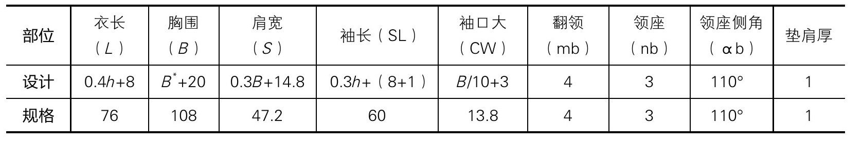 表5-1 平驳领单排两粒扣西装(H型)规格表(170/88A)
