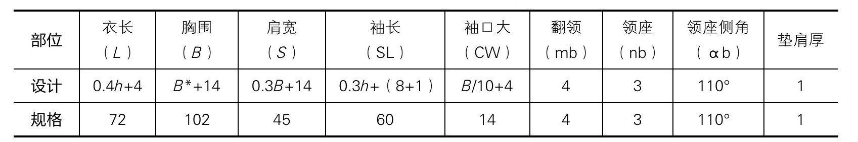 (5)袖长:袖长SL=0.3h(身高)+(8~11)cm+垫肩厚度,本款的垫肩厚为1cm。