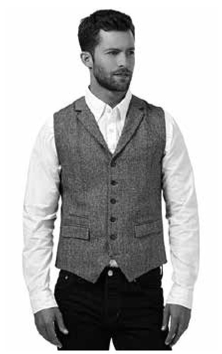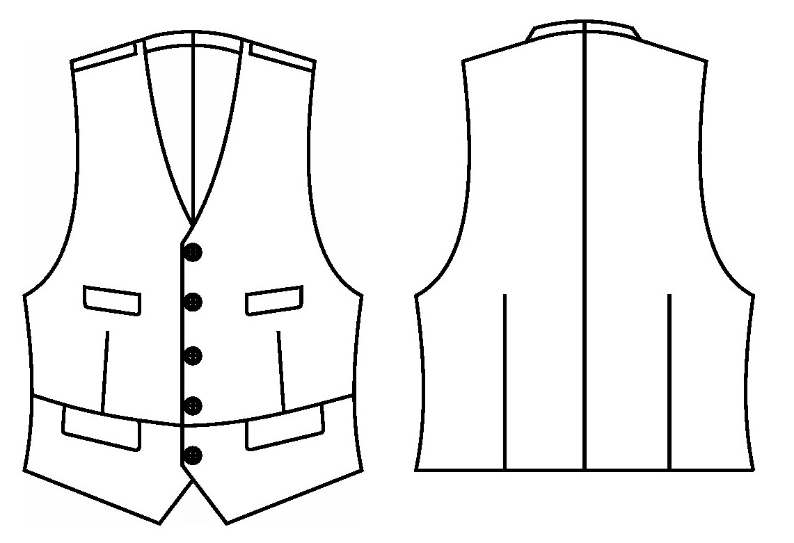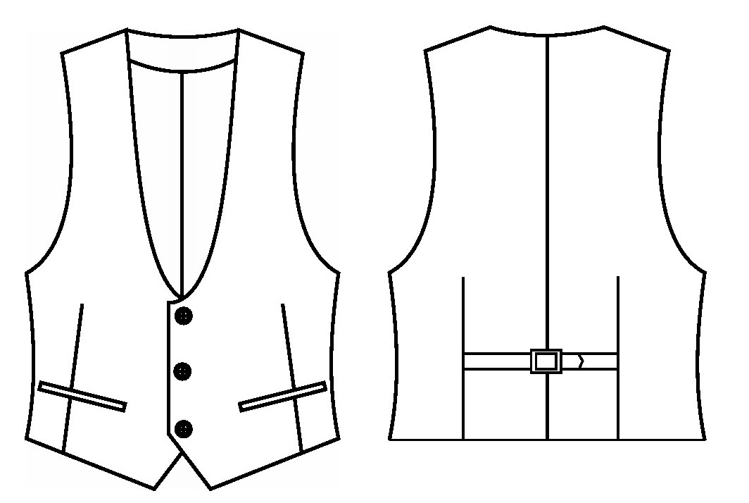 (1)衣长:晨礼服马甲衣长至腰节线下8~10cm为宜。