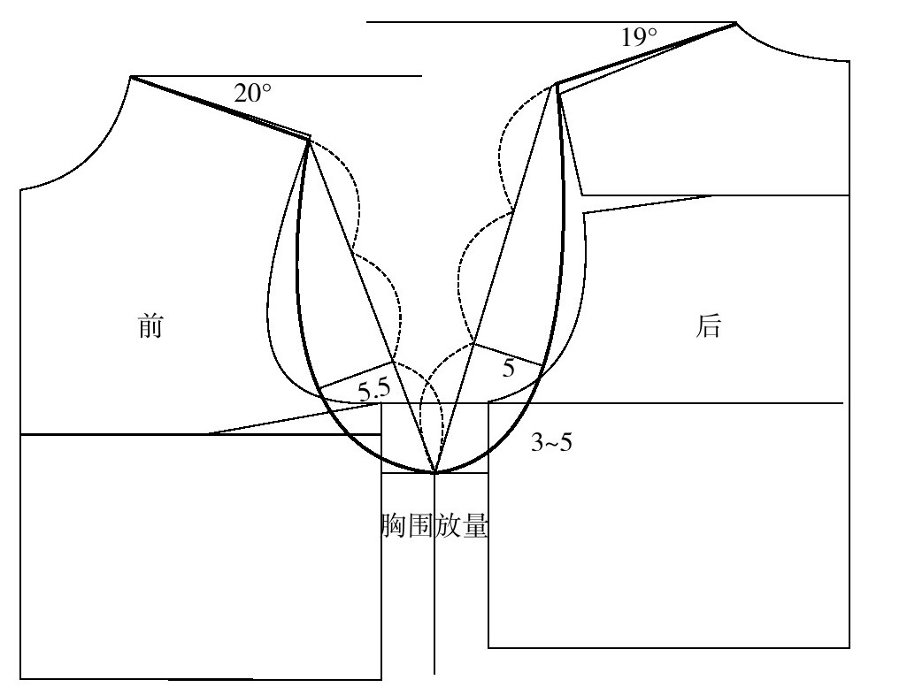 (5)前胸围大为B/4-0.5cm,后胸围大为B/4+0.5cm。