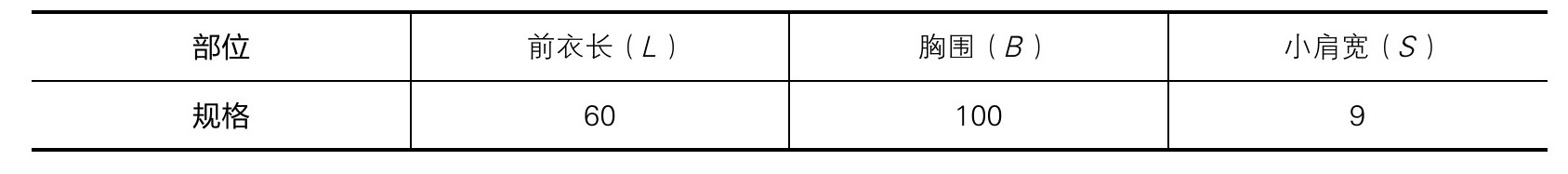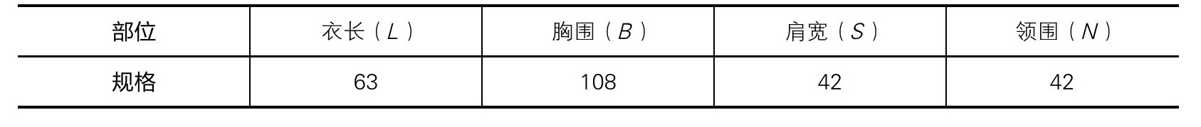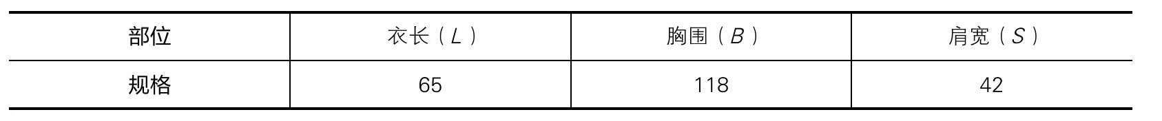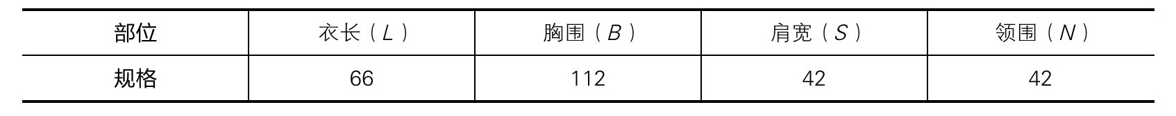 2.规格设计(表6-8)棉马甲属于较宽松型风格。