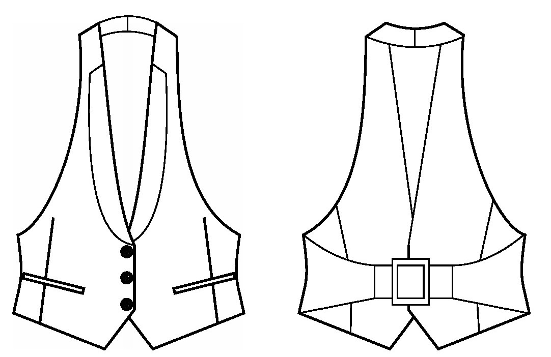 结构设计可在燕尾服马甲纸样的基础上进行变化,如图6-13所示。