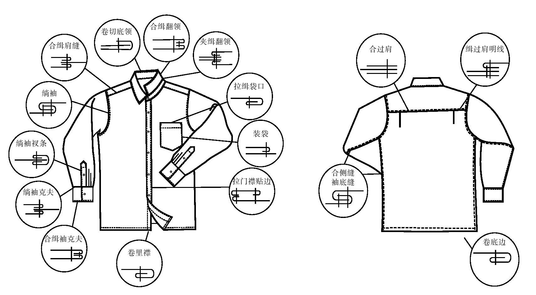 五、男衬衫缝型(图8-4)