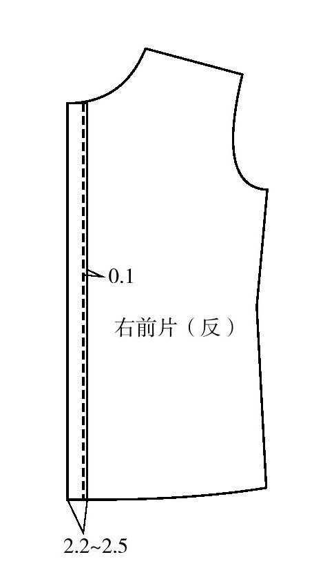 (2)缝合门襟贴边:门襟贴边与左前片面、里相对,沿1cm缝份缉缝。