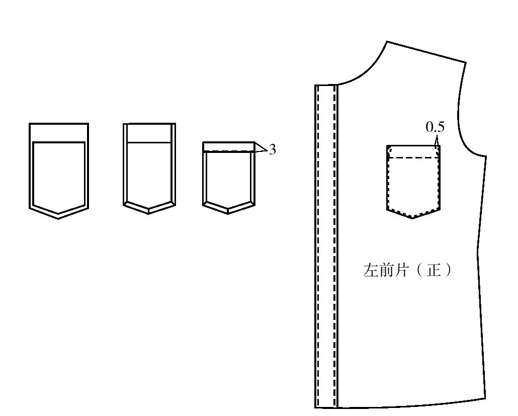 (2)缉袋口明线:沿折边0.1cm缉袋口明线。