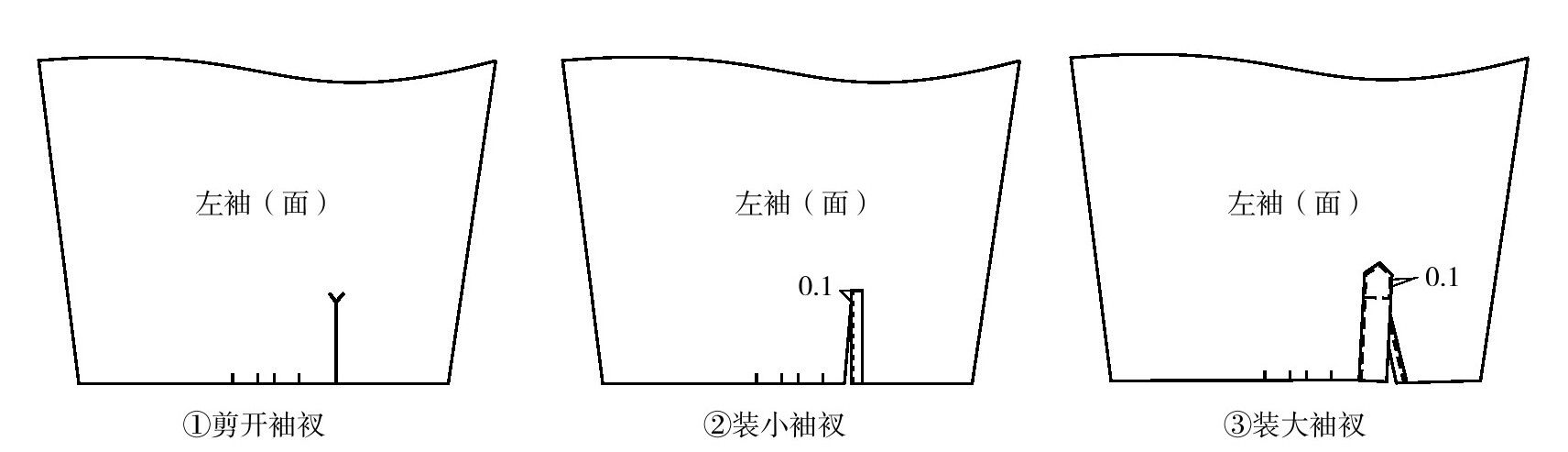 (2)折烫袖山缝份:将袖山头预留的0.5cm缝份用熨斗折烫到衣身袖窿一侧,要求折烫顺直。