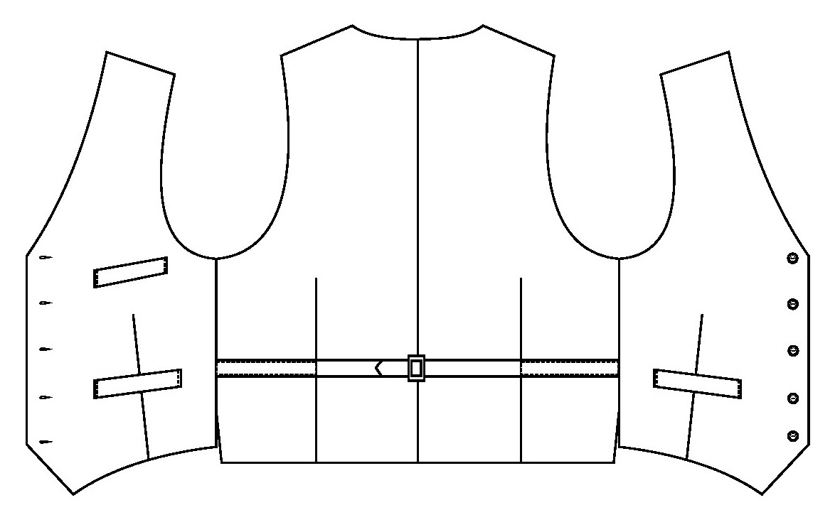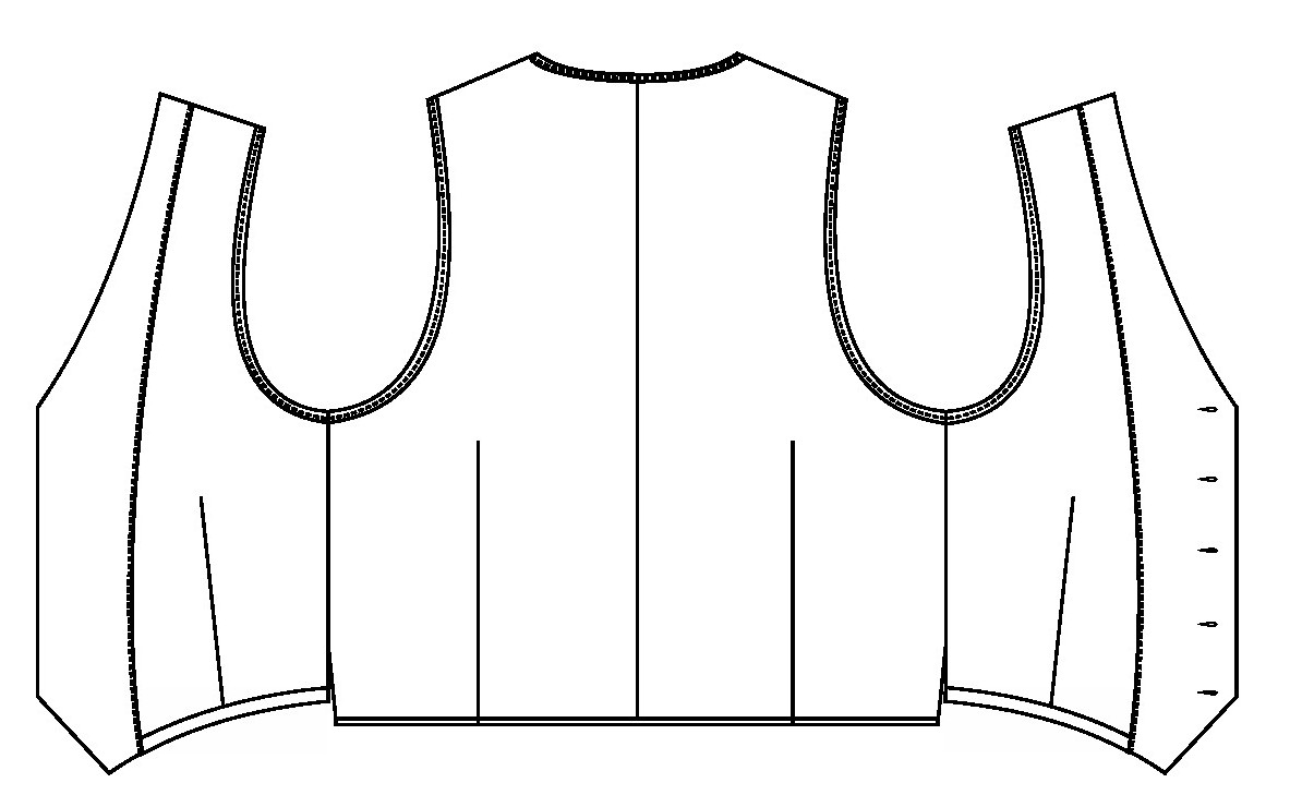 1.马甲展开示意图 马甲正面展开示意图,如图10-1所示。马甲里面展开示意图,如图10-2所示。