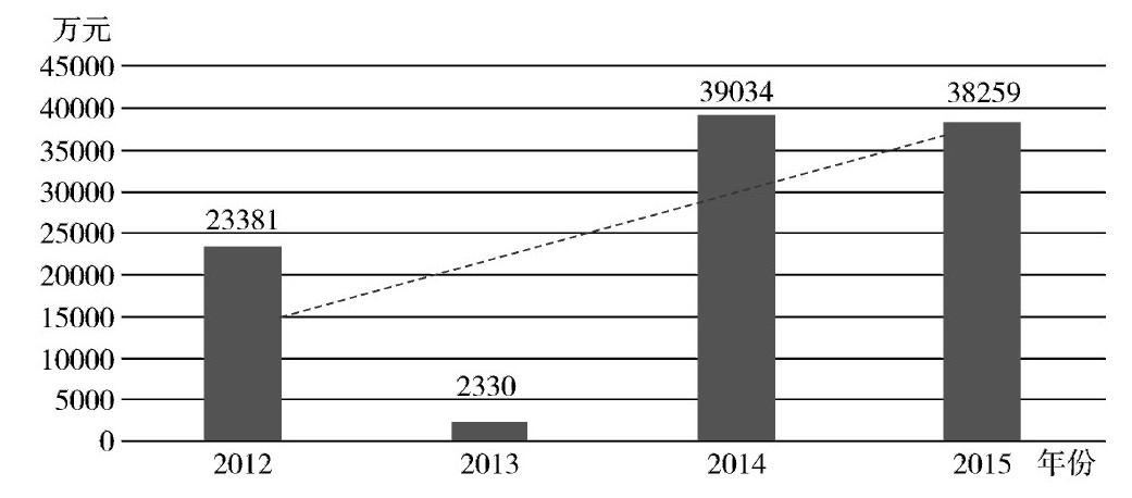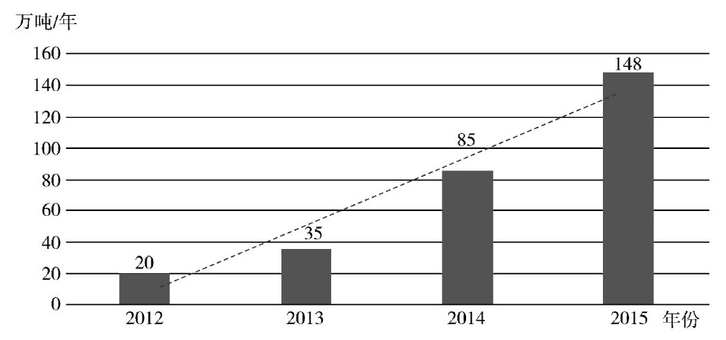 通过实施CPS架构下的聚酯长丝智能制造升级项目,新凤鸣在近几年获得快速发展,聚酯长丝规模已位列全球第二,企业竞力和影响力有了显著提升。一是全流程自动化自2009年启动以来,在近三年时间发展迅猛,2014年,自动化规模达到85万吨,已占集团的50.3%,2015年,自动化规模达到148万吨,占集团总规模的68%,见图10。二是在全行业不景气的背景下,由于该成果的推广应用,集团在行业低谷保持良性稳健增长,2014年和2015年利润总额均超3.8亿元,见图11。
