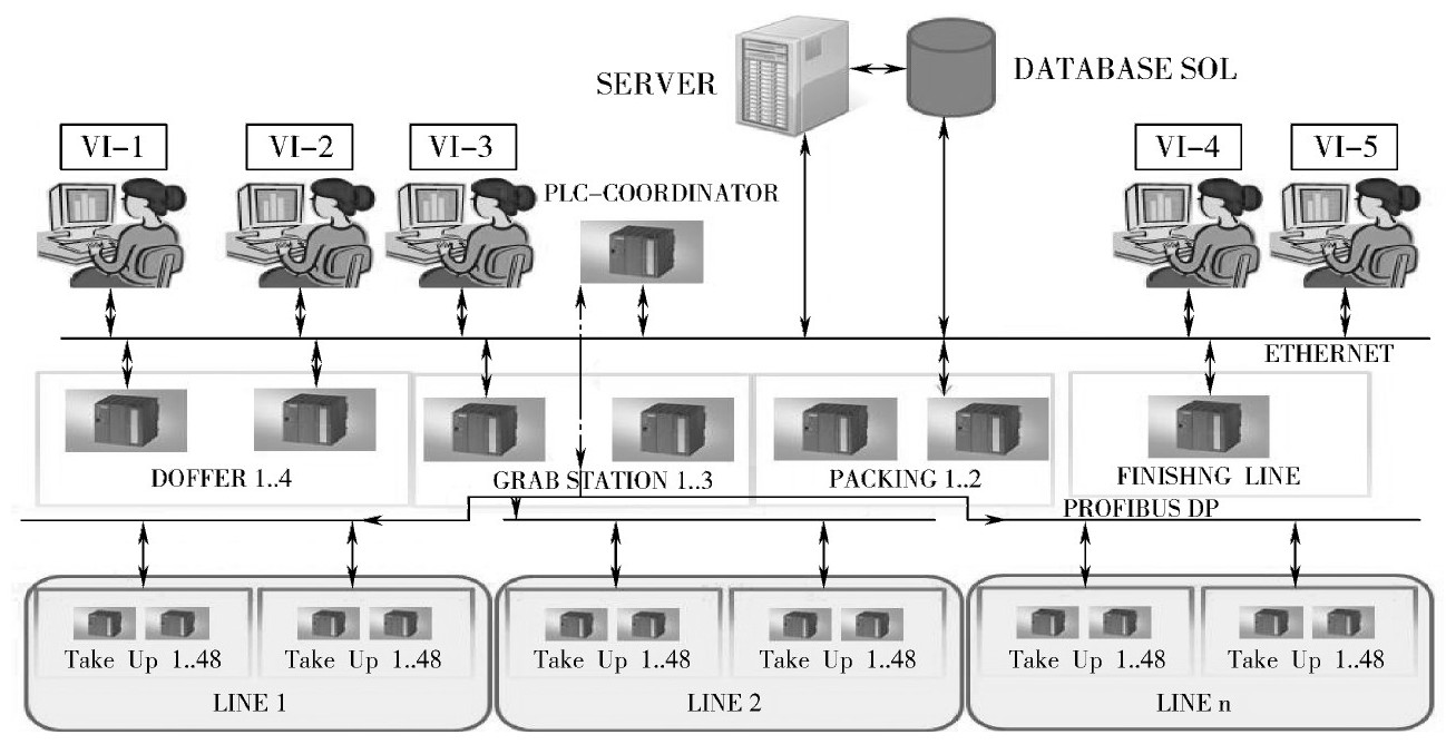 (5)数据高速传输:由于每套装置丝饼量达到每天5万~12万个,每个丝饼携带了大量生产信息,数据信息量大,每个20万~30万吨/年装置的小系统均配置了2GB/s高速信息传输能力。