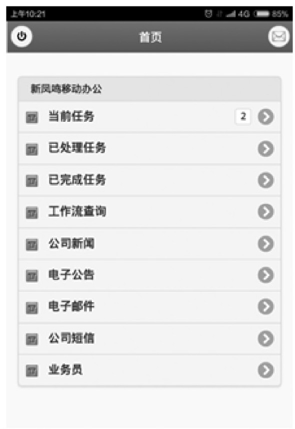 三是部署移动办公平台。公司投入大量的资源与杭州优时软件一起,成功在苹果(Ios)系统和安卓(Android)系统上研发了移动办公平台,使公司人员随时随地都能在手机上处理公司日常业务,由传统的纸质、PC端电脑审批变成手机和平板审批,大幅度提高办公效率,如图5所示。