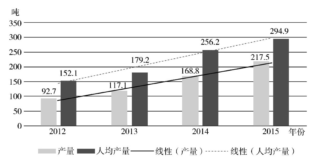 在生产效率方面,在卷绕、包装等几个用工最多的岗位实现了自动化,这些岗位裁撤的熟练工参与公司新增产能,基本实现了增产不增人的目的。2014年在集团长丝产量增长53%的情况下,人员增加不足1%,2014年,人均产量增长幅度达到42.9%,人均产量达到256吨,2015年人均产量已超294.9吨。如图7所示。