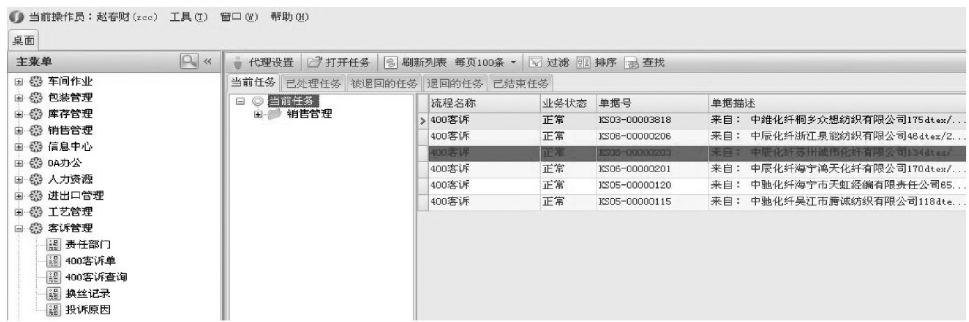 二是增加售后服务管理模块。对客户投诉(图4)、现场情况跟踪报告、质量情况反馈、后期赔偿处理都纳入系统进行处理,使整个售后流程都做到清晰、透明,落实到专人专事。