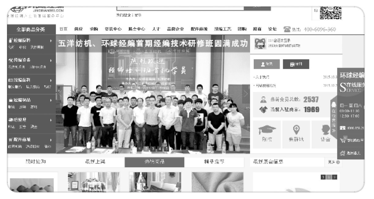 五洋纺机倾力打造环球经编网(www.jingbian360.com)(图2),立足整个经编产业链,以变革经编资源流通贸易模式、助力经编行业转型升级为愿景,以创新服务、成就客户为宗旨,与行业协会组织、经编产业集群、高等专业院校、经编上下游企业建立密切的合作关系,为行业用户提供专业全方位的行业资讯、人才、培训、原材料、技术、装备、终端产品等一站式增值服务。装备制造协同行业平台,实现为客户提供品牌、渠道、创客、创新、品质等的高端定制服务。