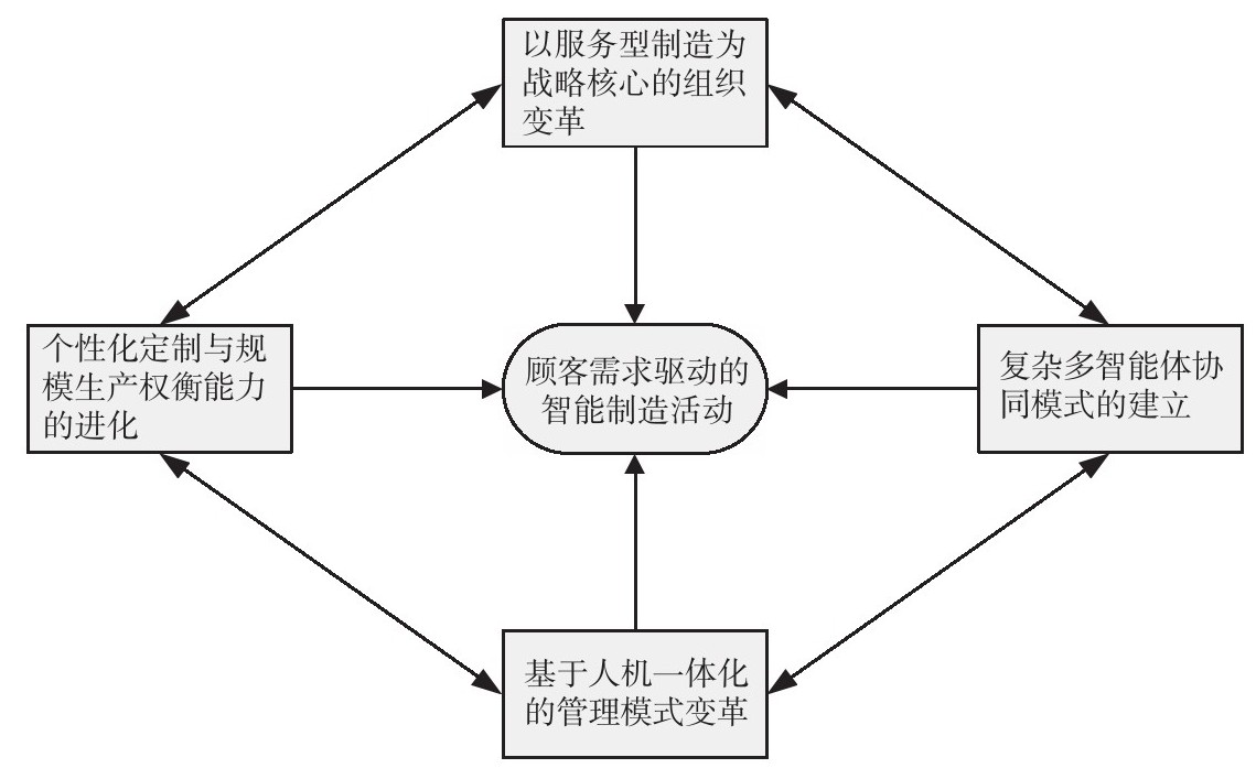 模型提出在互联网+数字化制造等技术发展下的企业数字化制造活动为核心的企业管理的变革,从智慧型组织、企业间的生产协同、个性化定制与规模生产权衡、人机一体化的管理变革四个方面去指导企业如何借助互联网+数字化制造技术创新去实现企业的转型升级。