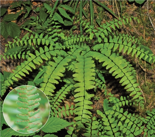 ●描述:陆生蕨类。根状茎直立或横卧。叶簇生或近生;柄栗色或棕色;叶片阔扇形,由叶柄的顶部二叉成左右两个弯弓形分枝,每个分枝上侧具4~6片一回羽状线状披针形羽片。孢子囊群横生于裂片先端浅缺刻内;囊群盖长圆形或肾形,淡灰绿色或褐色,膜质。