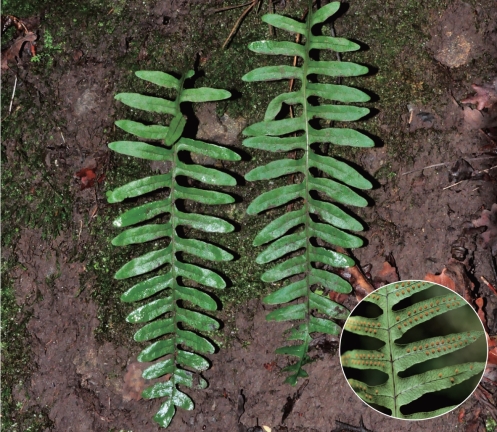 ●描述:附生蕨类。根茎长,横走,密被鳞片,乌黑色,卵状披针形,近全缘或具疏齿。叶疏生或近生;叶片卵状披针形或宽披针形,基部心形,羽裂渐尖头或尾状尖头,深羽裂或基部的几全裂,裂片15~25对,线状披针形,疏离,具锯齿,基部1对反折;叶脉网状,裂片中脉明显,禾秆色,侧脉和小脉纤细,不显;叶草质,两面近无毛,下面疏被小鳞片。孢子囊群圆形,较小,生于内藏小脉顶端,近裂片中脉着生,无盖。