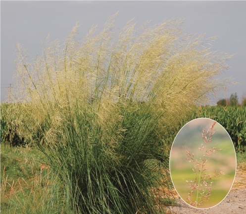 ●描述:多年生丛生草本。秆直立,坚硬,基部宿存枯萎的黄褐色叶鞘。叶舌三角形或尖披针形;叶片纵卷,质坚韧。圆锥花序开花时呈金字塔形开展,主轴平滑,分枝细弱,2~6枚簇生,平展或斜向上升;小穗灰绿色,基部带紫褐色,成熟后常变草黄色;颖膜质,披针形,顶端尖或锐尖,第一颖具1脉,第二颖具3脉;外稃厚纸质,顶端具2微齿,背部密生柔毛,具5脉,基盘具柔毛,芒自外稃齿间伸出,不扭转;内稃具2脉而无脊。