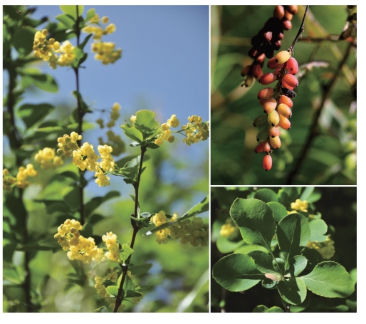 ●描述:落叶灌木。茎刺三分叉,稀单生。叶厚纸质,椭圆形,倒卵形,或长圆状椭圆形,先端急尖或钝,基部楔形,上面有折皱,叶缘平展,每边具20~40枚刺齿。穗状总状花序直立或斜上,常密生20~50朵花,花序梗无毛;花淡黄色;小苞片披针形,常红色,2轮4枚;萼片3轮,外萼片卵形,常带红色,中萼片长圆状倒卵形,内萼片倒卵状椭圆形;花瓣椭圆形,先端缺裂或全缘,基部缢缩呈爪。浆果长圆形,鲜红色,顶端具明显宿存花柱,不被白粉。