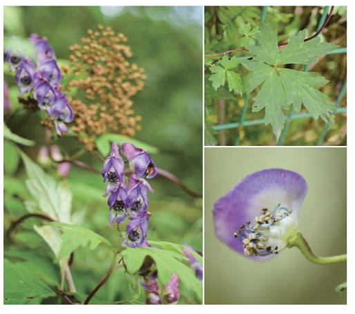 ●描述:多年生草本。茎缠绕,无毛,分枝。叶片坚纸质,卵状五角形,三全裂,中央全裂片披针形或菱状披针形,渐尖,边缘疏生或稍密生钝牙齿;叶柄无毛。花序有3~6朵花;苞片线形;小苞片生花梗中部,线状钻形;萼片蓝色,外面疏被短柔毛或几无毛,上萼片高盔形,下缘稍凹,外缘垂直,在中部或中部之下稍缢缩,继向外下方斜展与下缘形尖喙;花瓣无毛,唇长约8毫米,微凹,距向内弯曲;雄蕊无毛,花丝全缘;心皮3枚,无毛或子房疏被短柔毛。