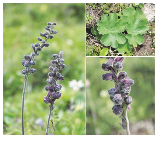 ●描述:多年生草本。茎被糙毛,有时无毛。叶3~5枚生茎的基部或近基部处,有长柄;叶片肾形或圆肾形,两面疏糙伏毛,有时无毛;茎中部叶1~2枚,很小或无;总状花序狭长;下部苞片似叶,上部苞片变小,披针形,全缘;轴及花梗有开展的糙毛。小苞片位花梗上部或近顶端,贴于萼上,卵形至宽披针形,密被长糙毛;萼片淡蓝色或紫色,内外两面均被长糙毛,上萼片船状卵形,距下垂,钻状圆筒形,末端钝;花瓣顶端微凹或二浅裂;退化雄蕊瓣片卵形,二浅裂;雄蕊无毛。