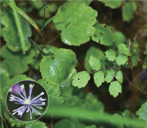 ●描述:多年生草本。茎被短柔毛,分枝。基生叶在开花时枯萎;茎中部叶有稍长或短柄,为三回三出复叶;小叶坚纸质,顶生小叶近圆形或菱状倒卵形,顶端有短尖,三浅裂,边缘有钝粗齿;叶柄基部有狭鞘,托叶半圆形,边缘多少流苏状。花序圆锥状,不等二叉状分枝;苞片钻状线形,被短柔毛;萼片5枚,淡紫色,椭圆状倒卵形,早落;雄蕊多数,花丝比花药稍窄,倒披针状线形;心皮8~16枚。瘦果纺锤形,有6条纵肋,无柄。