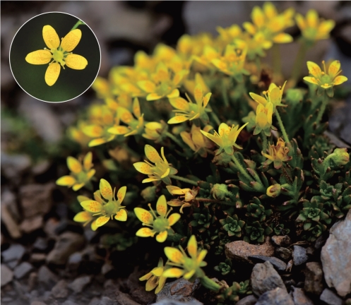 ●描述:多年生草本。丛生,具莲座叶丛。花茎具叶;莲座叶匙形至近狭倒卵形,先端具短尖头,通常两面无毛,边缘多少具刚毛状睫毛;茎生叶稍肉质,长圆形、披针形至剑形,先端具短尖头,常两面无毛,边缘常具腺睫毛。花单生茎顶,或聚伞花序具2~8朵花,细弱;萼片初直立,后变开展至反曲,肉质,通常卵形,先端钝或急尖,3~5条脉;花瓣黄色,中下部具橙色斑点,狭卵形、近椭圆形、长圆形至披针形,先端急尖或稍钝,基部具爪,3~7条脉;子房阔卵球形。