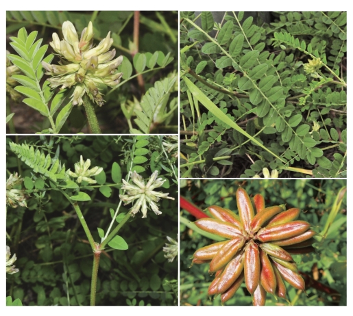 ●描述:多年生草本。茎直立、匍匐或斜上。羽状复叶有19~29枚小叶;托叶卵状披针形,基部与叶柄贴生;小叶倒卵形或倒卵状椭圆形,先端钝。总状花序有多数花,花密集成头状;花序梗疏被白毛;苞片宽披针形;小苞片2枚,花萼管状,萼齿与萼筒等长,疏被白色毛;花冠红紫、紫、灰蓝、白或淡黄色,旗瓣倒披针形。荚果圆柱形,劲直,多数聚生排成球形果序。