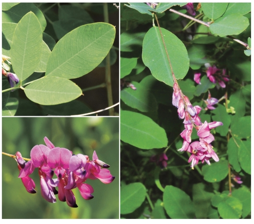 ●描述:灌木。小枝疏被短毛。叶具3枚小叶;小叶草质,卵形、倒卵形或卵状长圆形,先端圆钝或微凹,具短刺尖,基部近圆或宽楔形。总状花序比叶长,常构成大型、较疏散的圆锥花序;花萼5浅裂,裂片常短于萼筒;花冠红紫色,旗瓣倒卵形,翼瓣近长圆形,具耳和瓣柄,龙骨瓣与旗瓣近等长,基部具长瓣柄。荚果斜倒卵形,稍扁,具网纹,密被短柔毛。