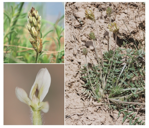 ●描述:多年生草本。茎极缩短,多分枝,被丝状黄色长柔毛。轮生羽状复叶;托叶膜质,宽卵形,于中下部与叶柄贴生;小叶13~19片,对生或4片轮生,卵形、长椭圆形、披针形或线形。多花组成密集圆筒形总状花序;花莛坚挺圆柱状,密被黄色长柔毛;苞片披针形;花萼坚硬,萼齿披针状线形;花冠白色或淡黄色,旗瓣倒卵状长椭圆形,翼瓣匙状长椭圆形,龙骨瓣近矩形,喙锥形;子房密被黄色长柔毛,花柱无毛。荚果膜质,卵形,膨胀成囊状而略扁。